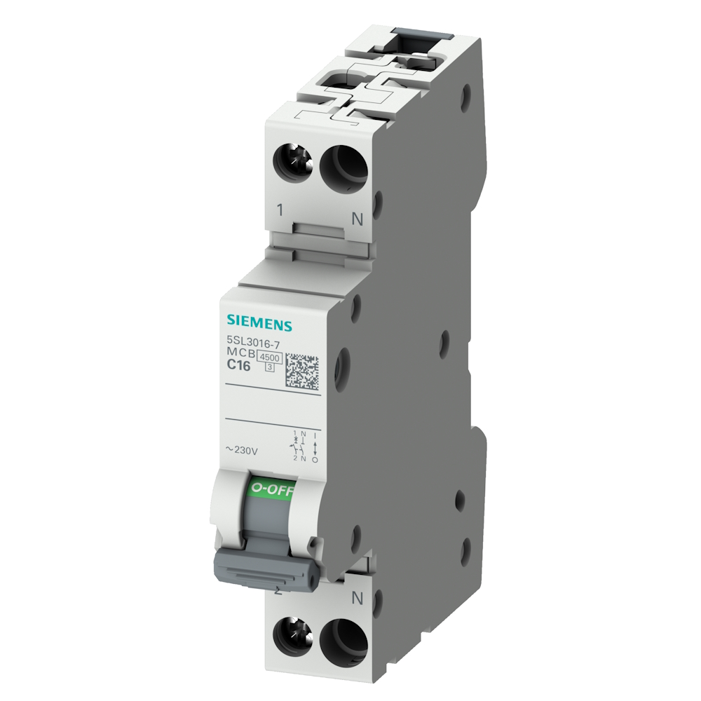 The Circuit Breaker is a 230V 4.5KA, 1Pole+N/1MW C2 circuit breaker, designed for reliable electrical protection in various applications. It is part of Siemens' range of circuit protection devices, ensuring safety and efficiency in electrical systems.