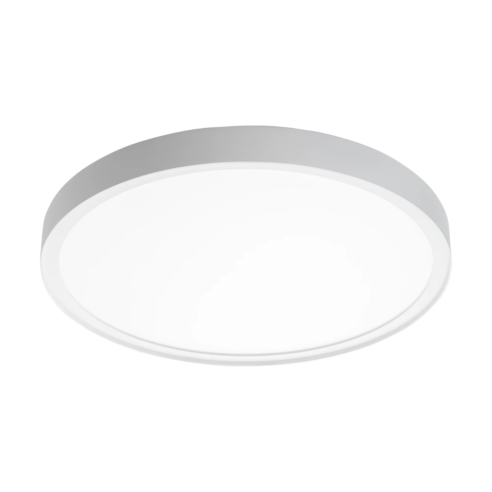Disc 480 Direct/Indirect is an energy-efficient surface-mounted ceiling luminaire with a slim profile. Opal prismatic diffuser provides glare-free and pleasant lighting with a decorative indirect light. Made of durable aluminum and polycarbonate. Easy installation with quick connection between luminaire and back plate that can be screwed directly onto the most common ceiling boxes. Using dip switches on the driver, the luminous flux can be changed.