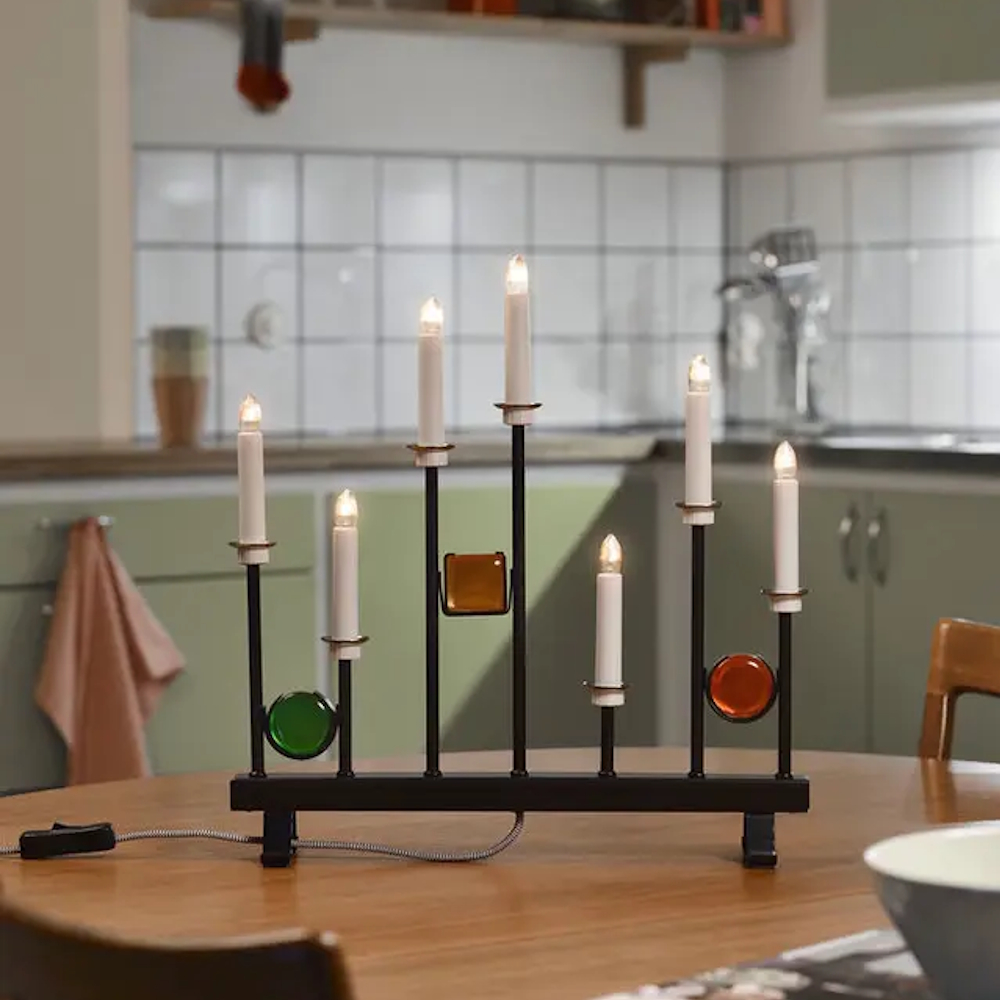 Electric Candlestick 7 Candles With Decorations E10 IP20 Metal Black/Multicolor Konstsmide