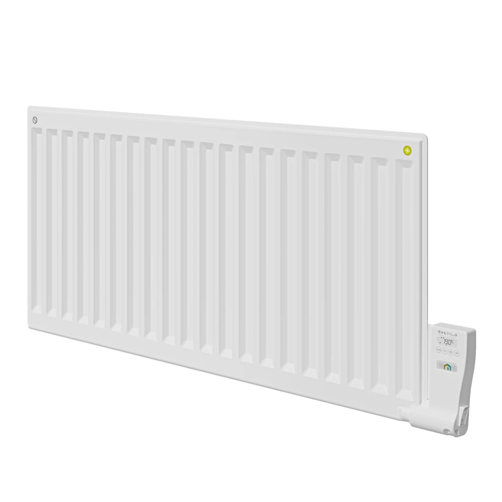 KABA, oil-filled electric radiator with from LVI by Purmo. Electronic PID thermostat with digital display, weekly program, open-window detection and button lock function mounted on the right side. Thermostat operating modes: auto, comfort, reduced, frost protection. KABA (400V) is delivered with wall brackets and connection cable, excluding connection box.