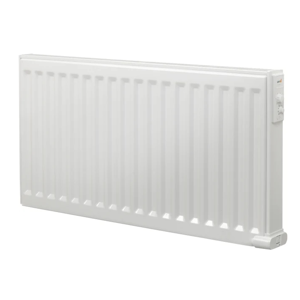 Yali Comfort, oil-filled electric radiator from LVI. Electronic thermostat. 750W, 230V. Comes complete with top grille and side plates which gives a stylish impression. Junction box and wall brackets included. Surface temperature adjustable 60, 75 and 90 C. External clock via control zero. Lockable thermostat unit. The temperature reduction is activated manually or via a central time switch and separate N-line. Weekly program individually in each radiator. However, LVI recommends a central external clock or Touch E3 if weekly programs are needed.