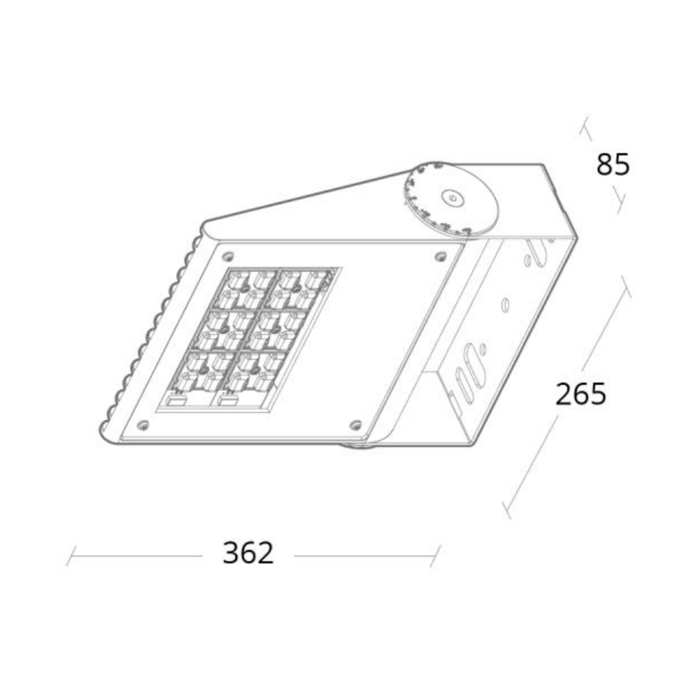 Langfoss is a powerful floodlight luminaire for large areas such as transport and storage areas, playgrounds, industries, ball fields and parking lots. Nordic design for Nordic conditions! The top slope makes the snow slide off and the bracket can withstand heavy loads. The asymmetrical optics provide light where it is needed and the bracket is adjustable and also two-part, making the sturdy luminaire easy to install. Can be mounted in many ways; post top, side post bracket, corner bracket or directly on the facade. Supplied with 2m cable.