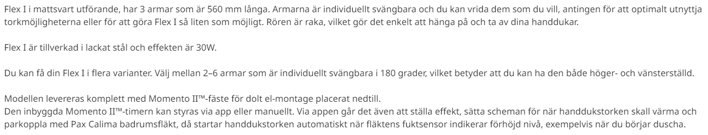 Flex I, 3 armar 560 mm individuellt svängbara. Momento II timer med möjlighet till app-styrning. 30W. Mattsvart