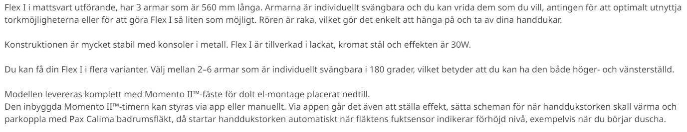 Flex I, 3 armar 560 mm individuellt svängbara. Momento II timer med möjlighet till app-styrning. 30W. Mattsvart