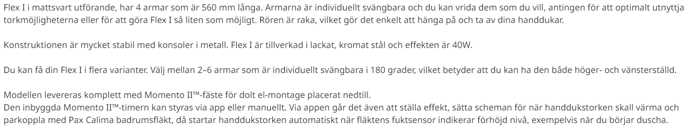 Flex I, 4 armar 560 mm individuellt svängbara. Momento II timer med möjlighet till app-styrning. 40W. Mattsvart
