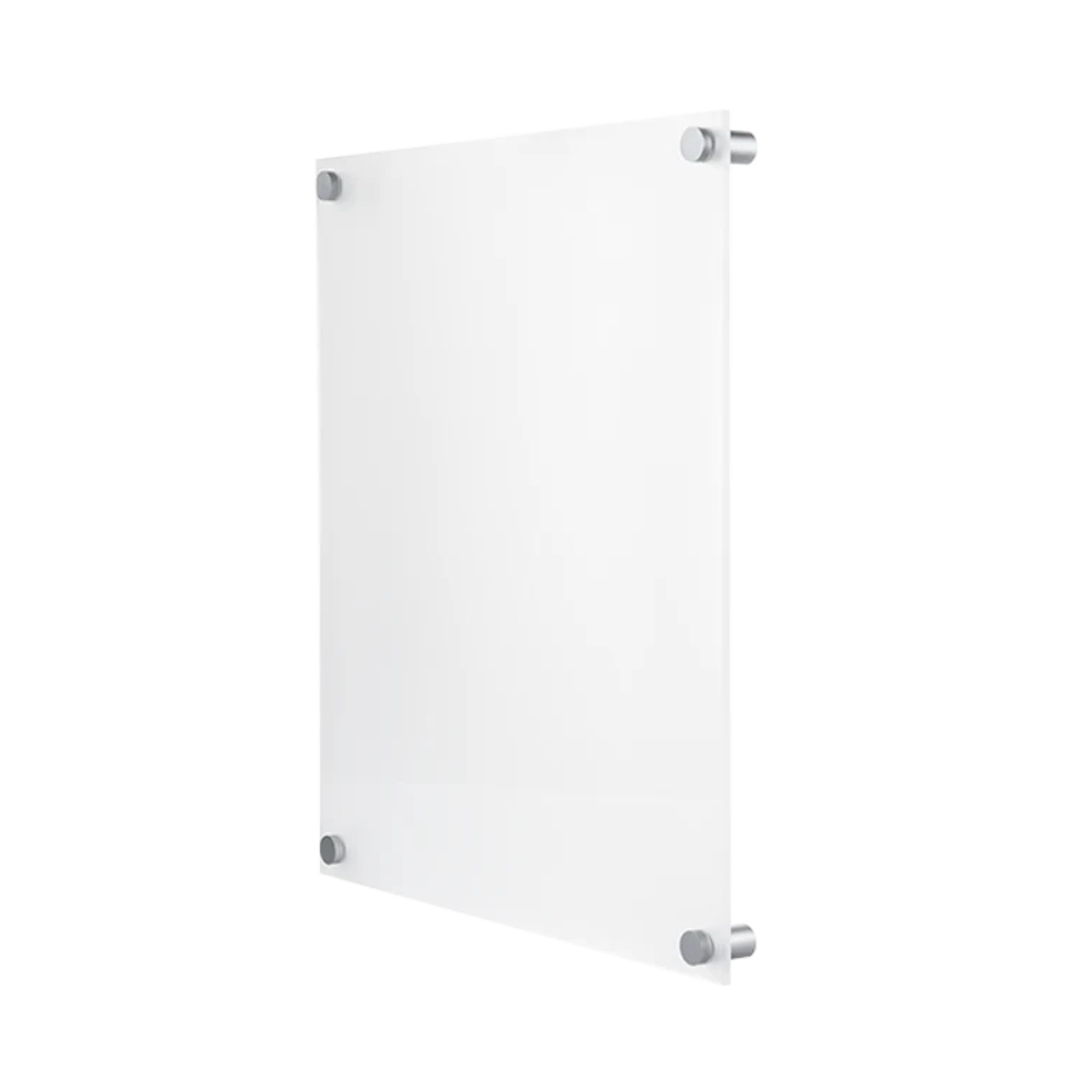 Name and number sign in opal plexiglass for mounting under a wall luminaire. Supplied with four screws and spacers in silver that give the sign a floating effect and exclusive appearance.