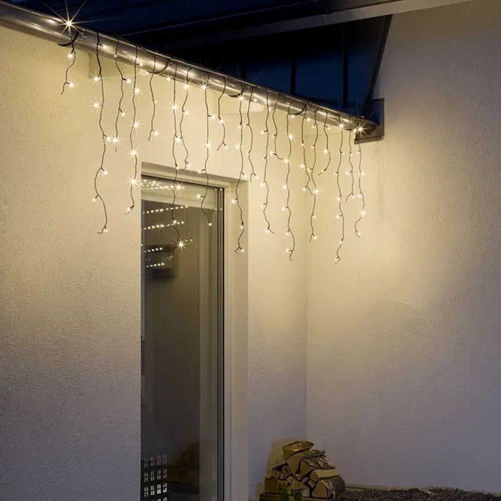 The icicle string is 2.4m wide and is equipped with 100 LED lights that shine in a lovely extra warm white light. [Energiklass E]