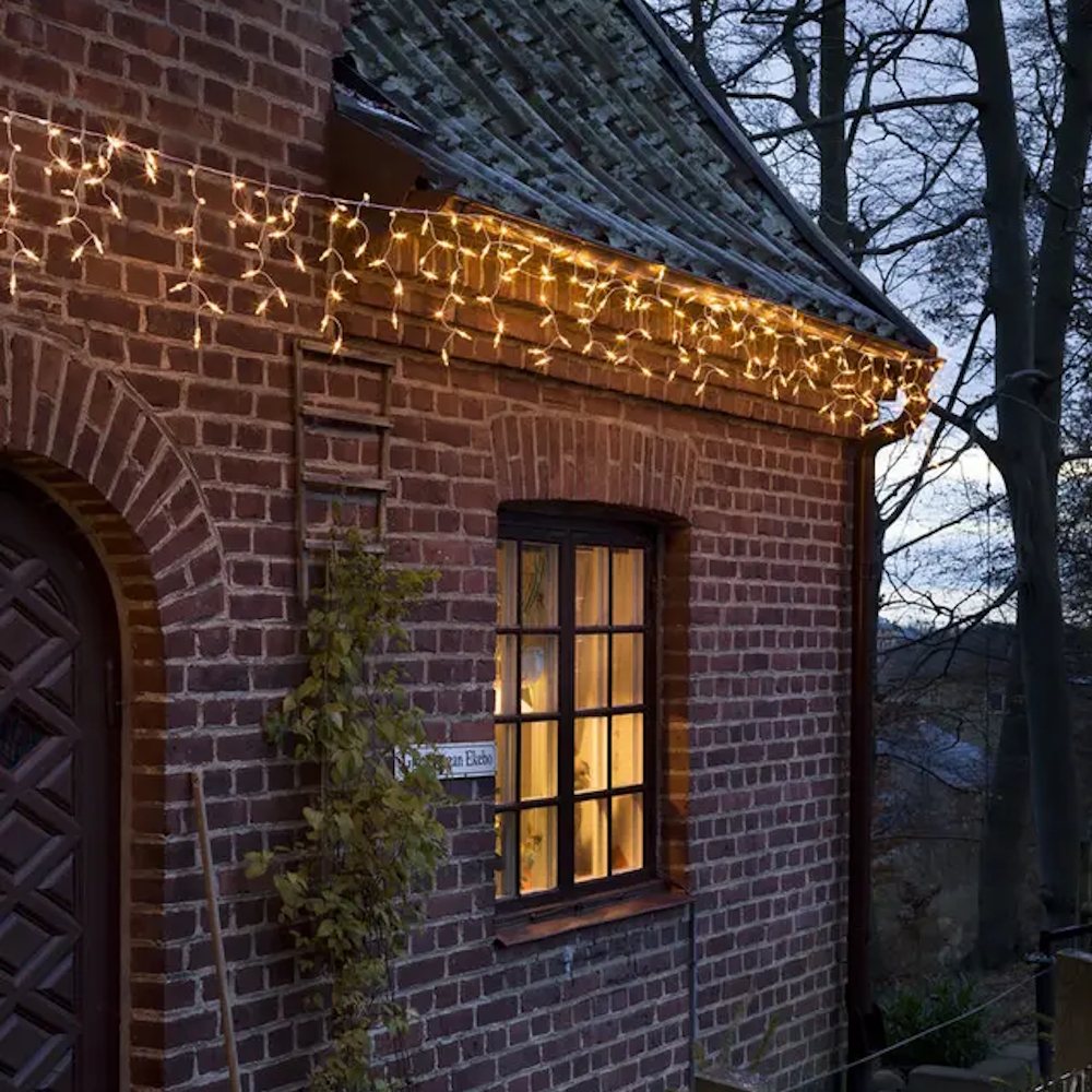 Turn the winter darkness into pure magic with an icicle string of 200 amber-colored LEDs and white cable, 31V. The warm glow creates an inviting atmosphere and gives a wintry feeling all year round. The string is resistant to both rain and debris and fits perfectly around the roof of the house, along the fence or on the balcony. Energy-efficient lighting that spreads atmosphere evening after evening.