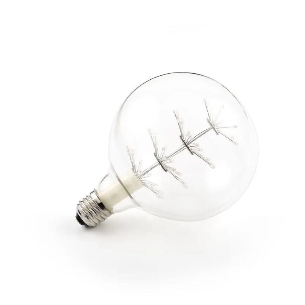 Decorative and energy-efficient light source intended for indoor use, with a power of 2.2W and a warm white light color of 2100K.