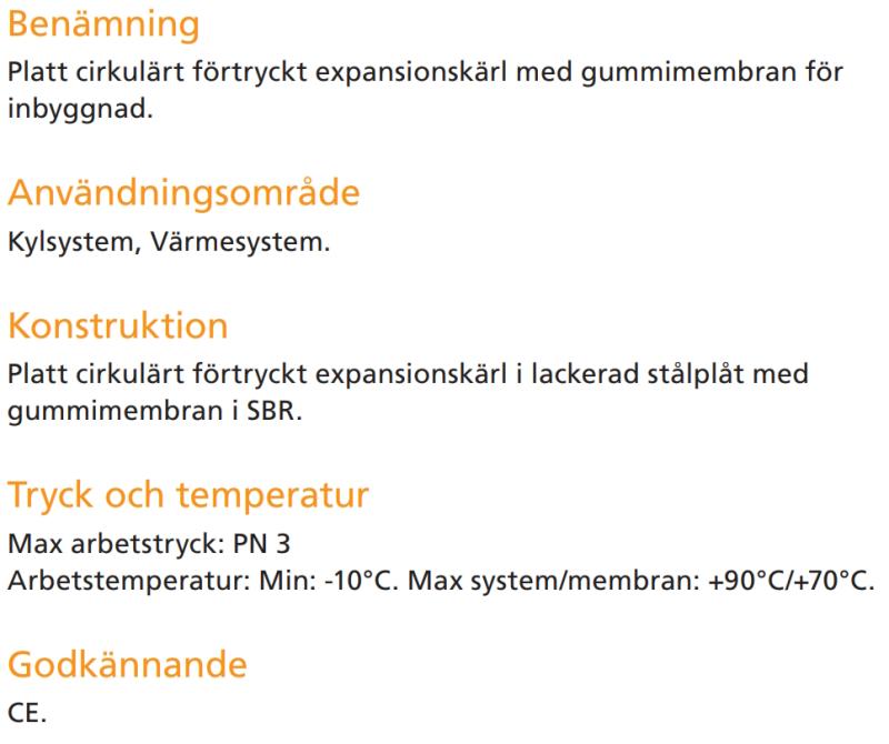 Platt cirkulärt förtryckt expansionskärl 12 L med gummimembran för inbyggnad.