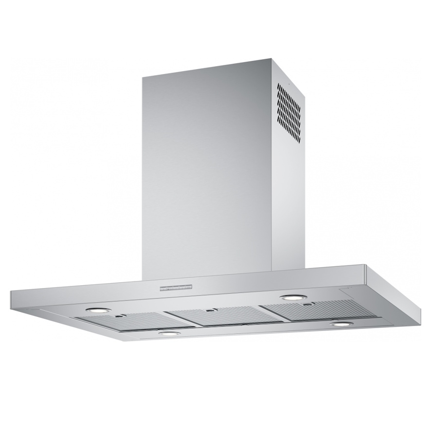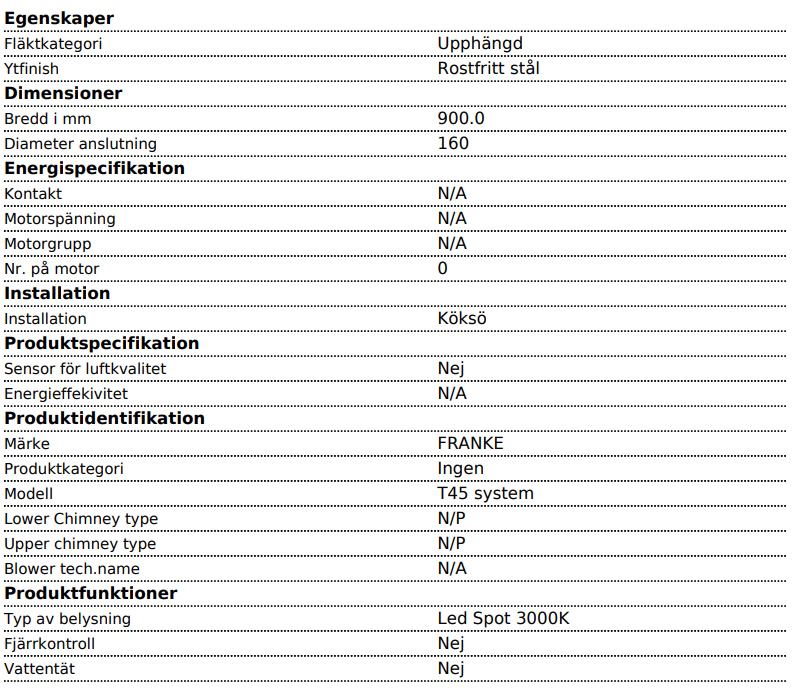 T45 792-17, frihängande kåpa med transformator för styrning av AC-centralfläkt i villa/radhus med självkontrollerande centralventilation. Kan forcera ventilation i både kök och våtrum med separat styrning av spjäll , 90cm, rostfri, metalltrådsfilter, 3 hastigheter extern fläkt och ventilationsläge, justerbart grund- och forceringsflöde, Spot-LED 3000K, tillverkad i Sverige