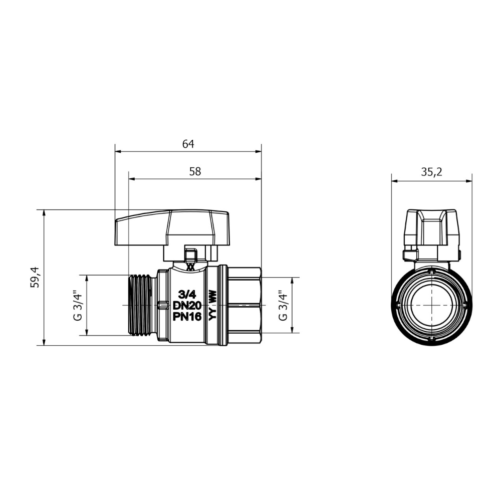 - Dimension connection 2: Port 20 (3/4")