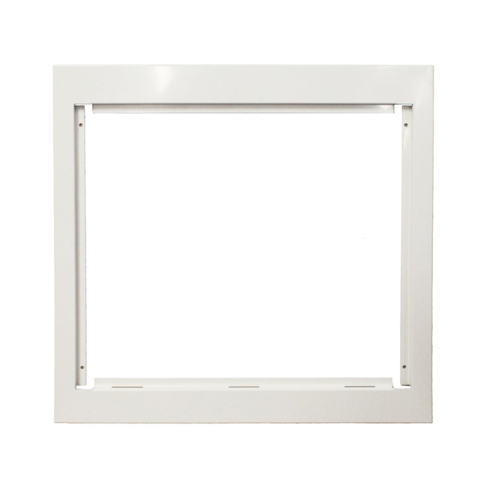 This frame can be used, for example, when the cabinet has been mounted too far "out" in the construction, then it becomes a problem to get the regular door frame (LK Frame/Door UNI INB) flush with the wall. When the existing frame is replaced with the LK Extension Frame, the INB door should be kept/moved to the new frame. A UTV door does not fit in the LK Extension Frame.