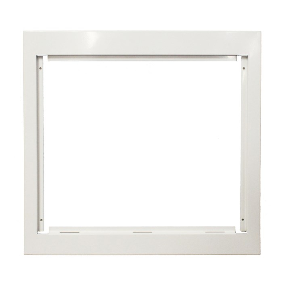 This frame can be used, for example, when the cabinet has been mounted too far "out" in the construction, then it becomes a problem to get the regular door frame (LK Frame/Door UNI INB) flush with the wall. When the existing frame is replaced with the LK Extension Frame, the INB door should be kept/moved to the new frame. A UTV door does not fit in the LK Extension Frame.