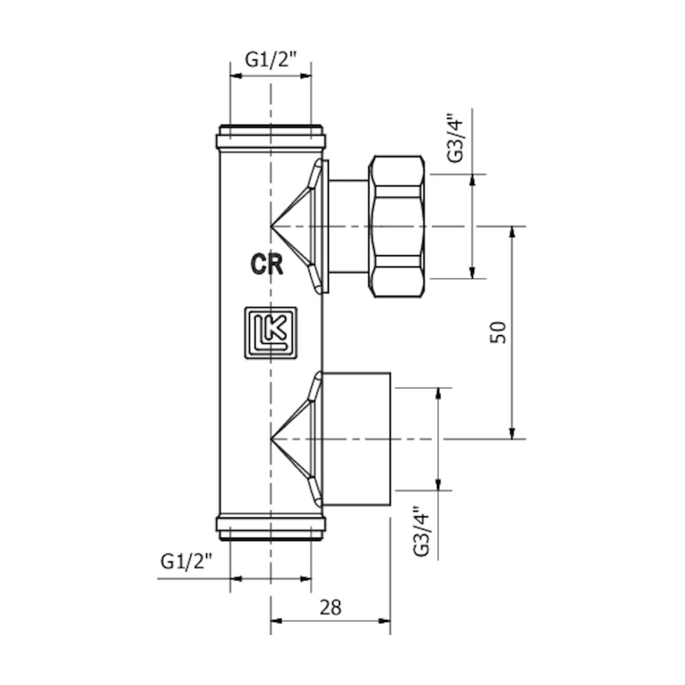 180° angle that fits on LK Manifold UNI to angle the supply in the cabinet when you want to be able to install heat quantity measurement, for example. Made of dezincification-resistant brass, nickel-plated. The angle has a union nut with flat seal for e.g. water meter (gasket is included) and an internal G20 gg adapted to be used against the o-ring seal on the external G20 side of an LK Manifold UNI without additional sealing. Distance between the connections is c/c 50 mm.
