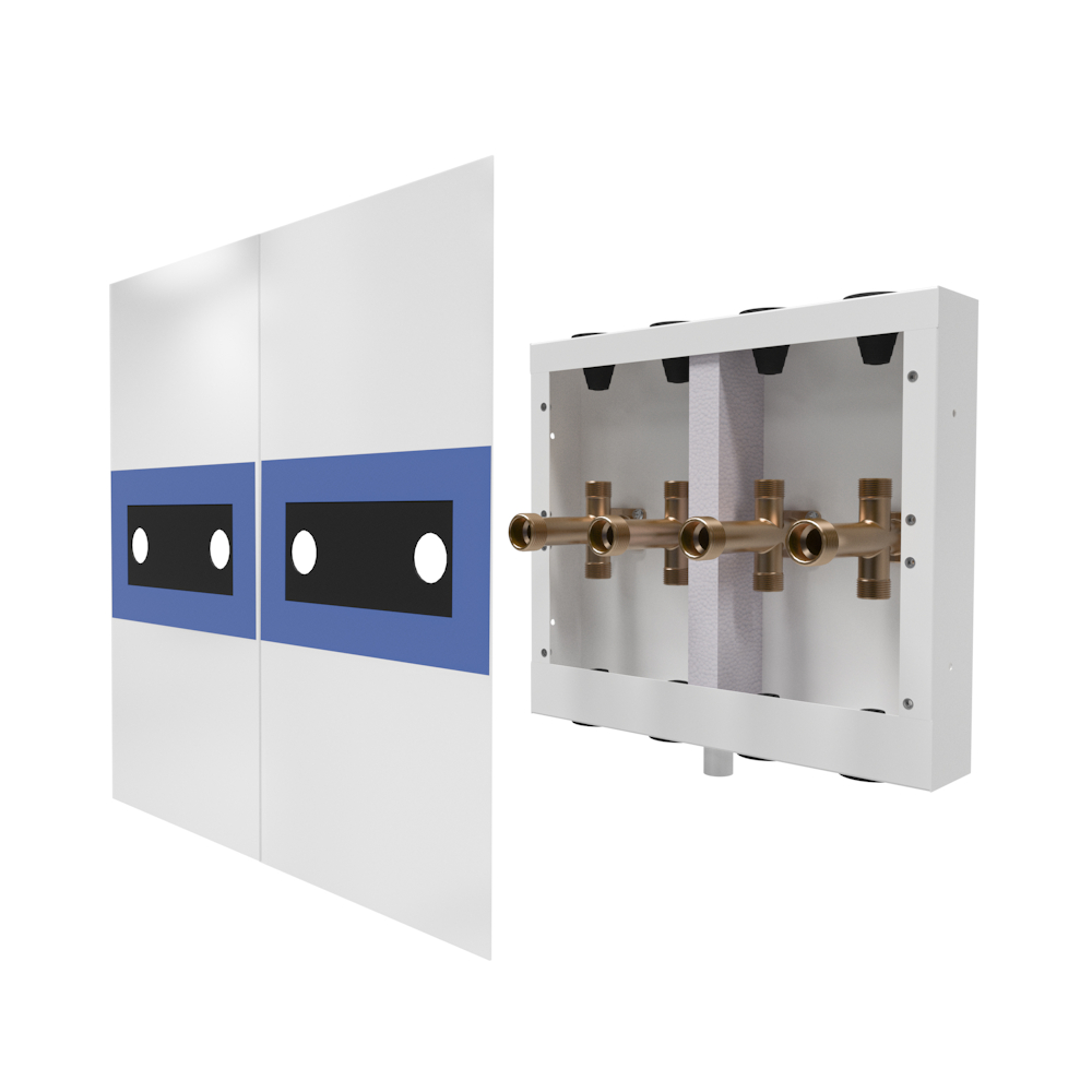 LK Manifold Cabinet UNI VP is intended for use when connecting a heat source to pipes in the wall, such as cold water, hot water, supply and return.
