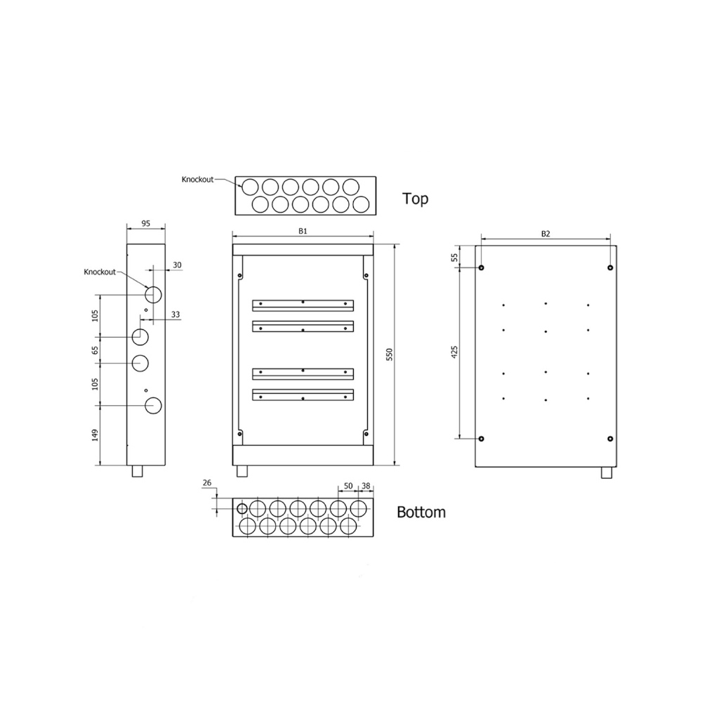 - Size (HxWxD): 350x550x95mm