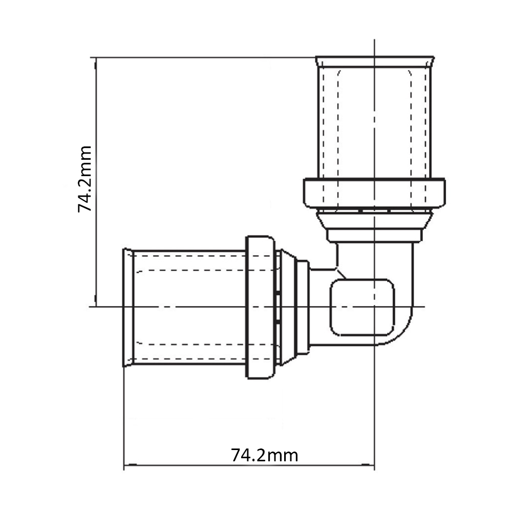 PressPex 90° angle fitting A50 for LK PAL and PE-X Universal pipes. Brass, with two press sleeves and leak indication unpressed, PN10.