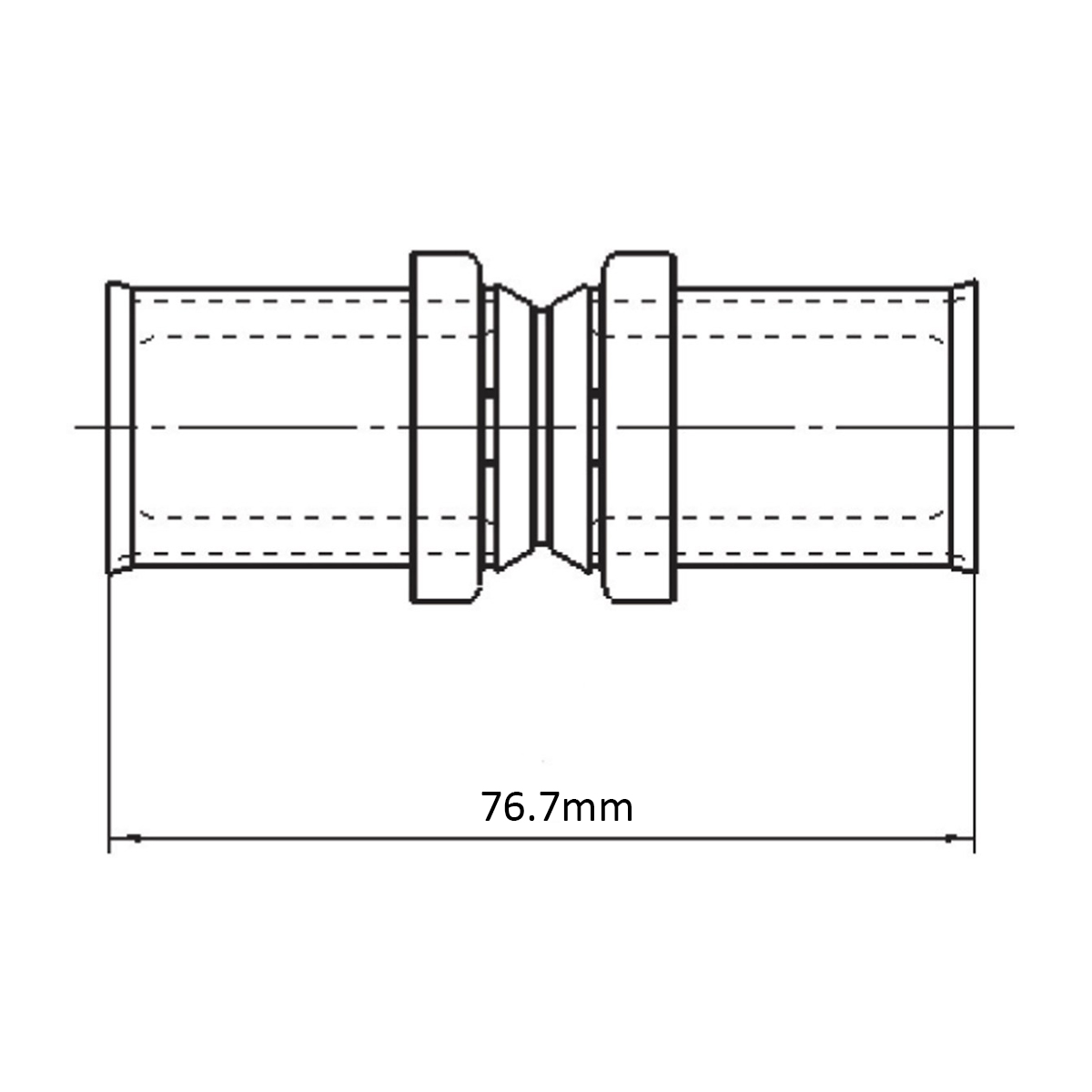 Straight PressPex coupling for transition A50 to A40 with two press sleeves, Intended for LK PAL and PE-X Universal pipes.