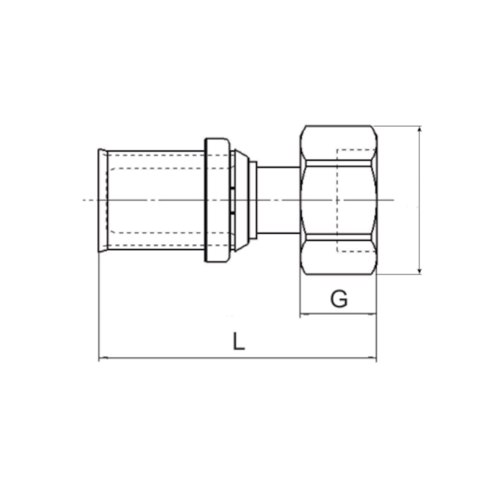 Press coupling for joining LK PAL and LK PE-X Universal pipes. For flat sealing. Teflon gasket included. Parts of this range in dimensions AX16 16x2.0mm and A32 32x3.0mm can also be used for PEM pipes.