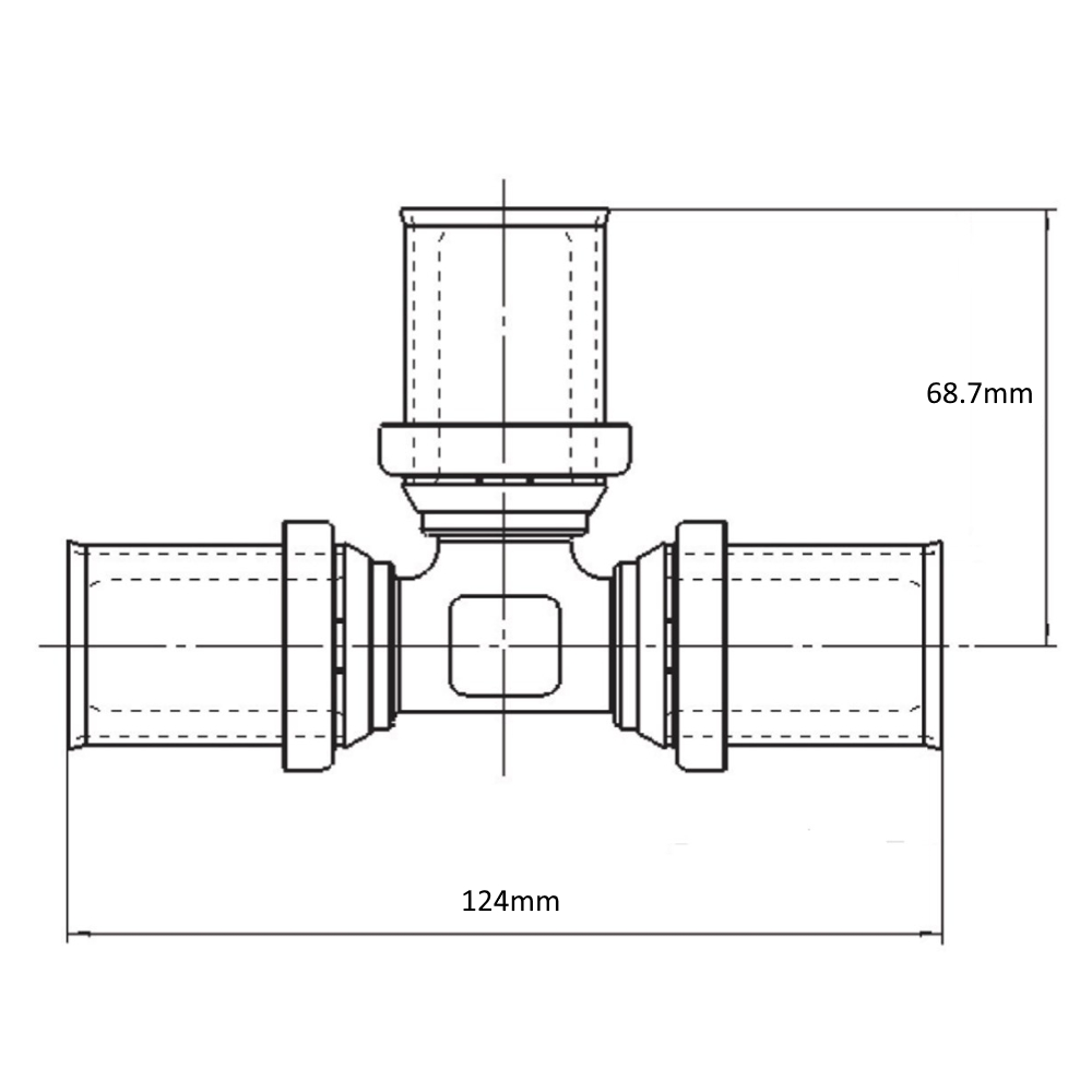 Press coupling for joining LK PAL and LK PE-X Universal pipes. Parts of this range in dimensions AX16 16x2.0mm and A32 32x3.0mm can also be used for PEM pipes.