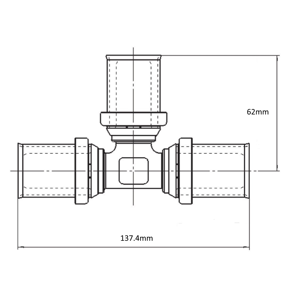 Press coupling for joining LK PAL and LK PE-X Universal pipes. Parts of this range in dimensions AX16 16x2.0mm and A32 32x3.0mm can also be used for PEM pipes.