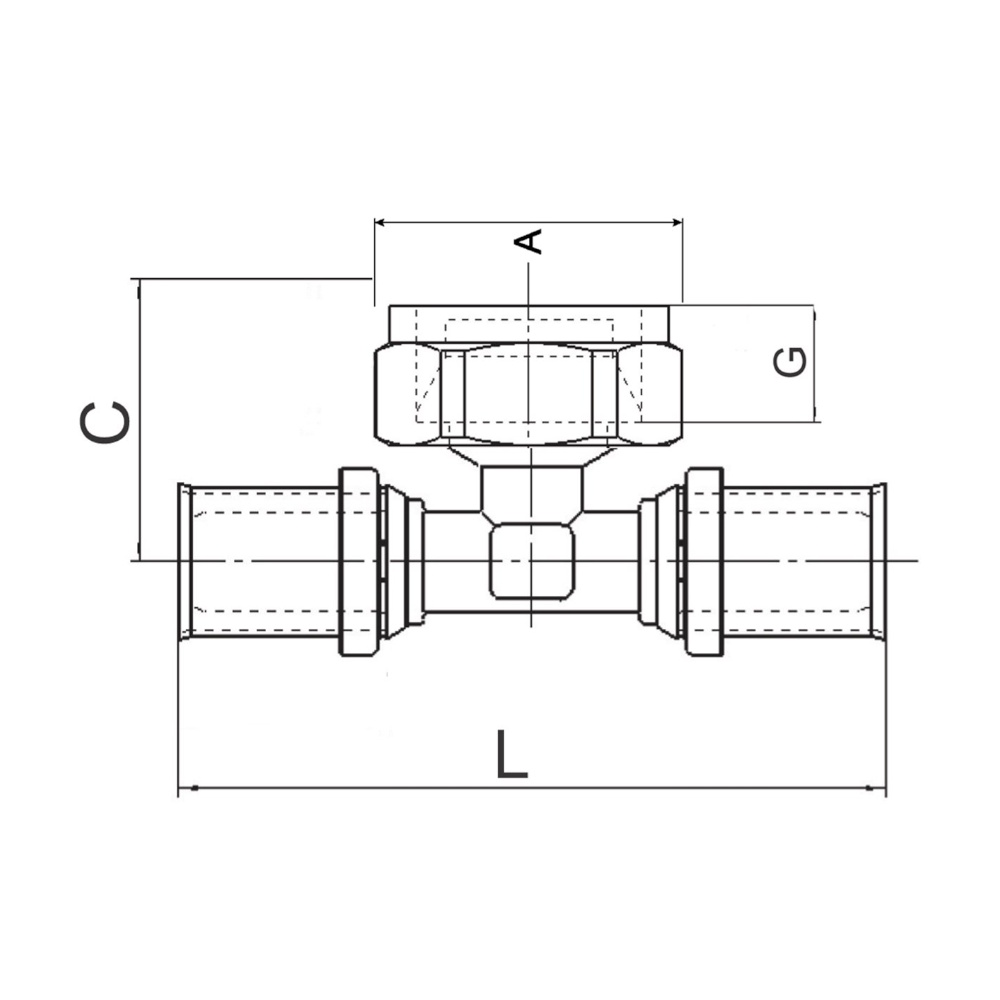 PressPex T-pipe with playful nut for connecting LK PE-X and LK PAL Universal Pipe to G20 thread.