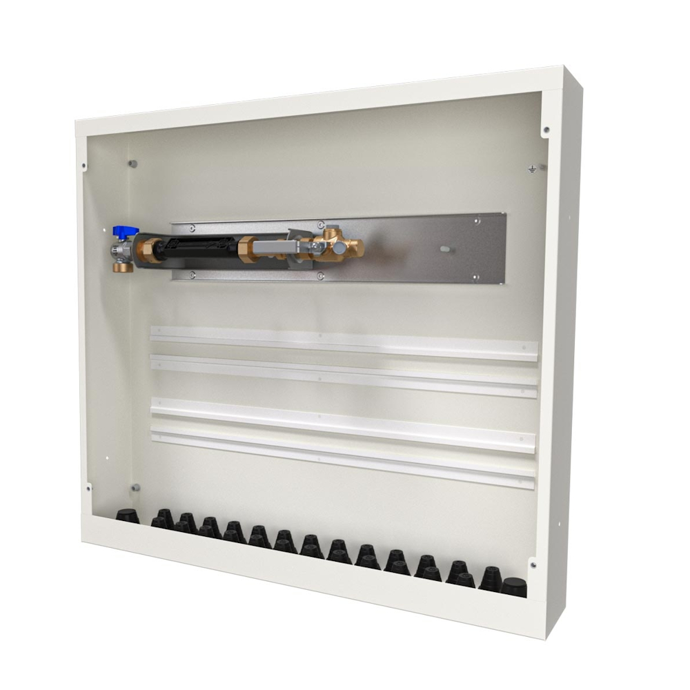 LK Water Meter Cabinet UNI XL a leak-proof prefabricated distributor cabinet with pre-mounted water meter console.
