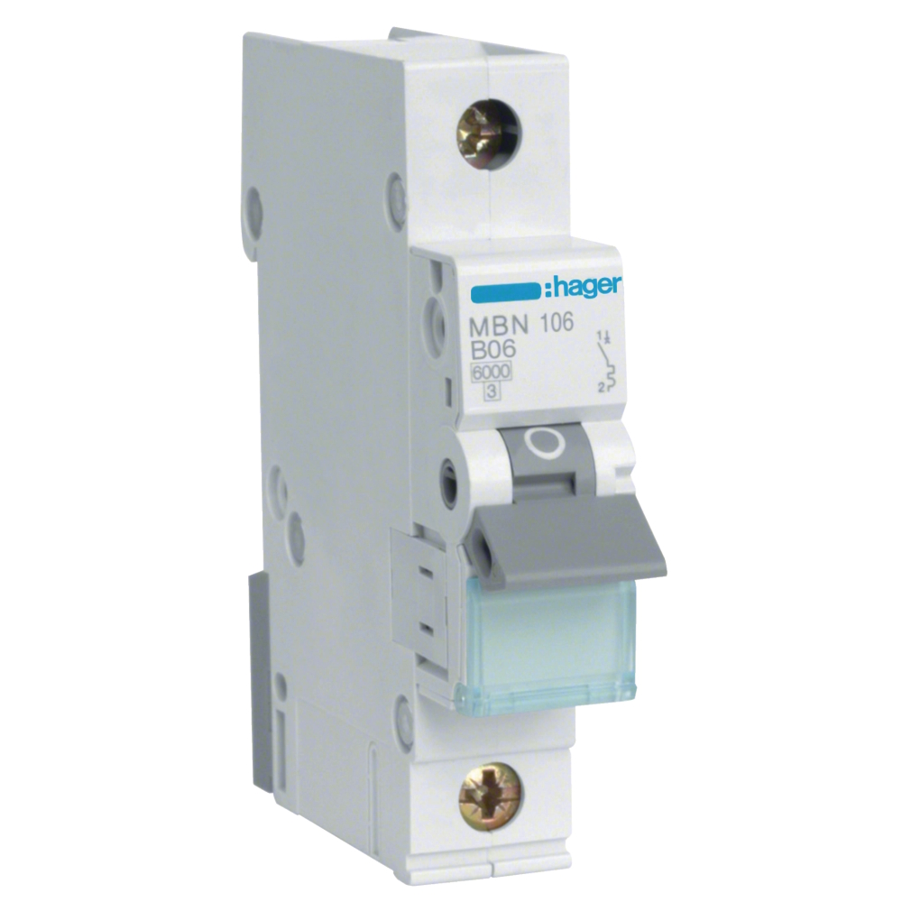 Mini Circuit Breaker Screw Connection 1Pol B-Characteristic 6A 6kA 230-400V IP20 Hager