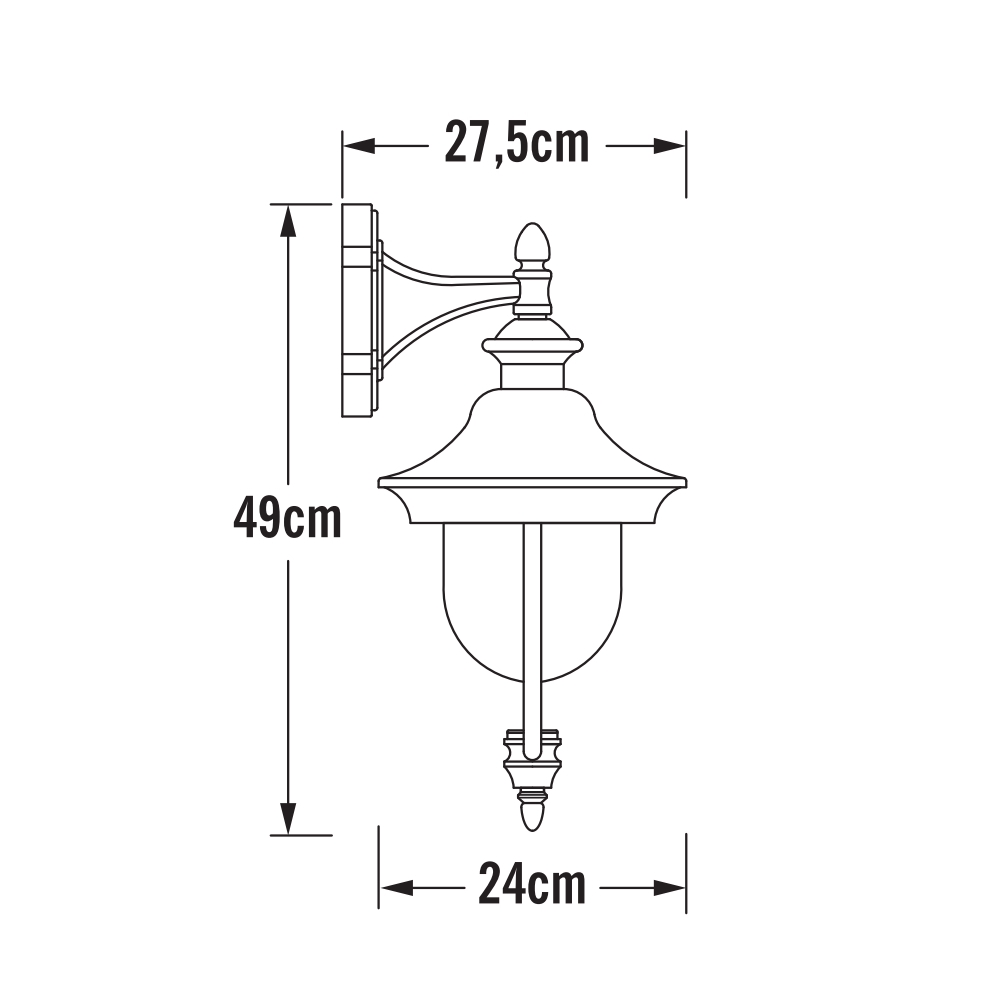 Parma facade lighting in stainless and black-lacquered aluminum with clear glass. A classic and durable outdoor lighting with beautiful details that enhance the character of the house. E27 socket. Light source not included.