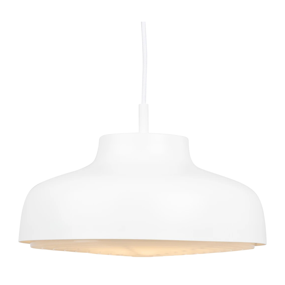 Classic and neutral pendant luminaire colored with new trendy colors that beautifully and easily blend into its environment. With its white or black textile cable and matching foldable ceiling cup, the solid feel around the luminaire is enhanced. The frame is Swedish-made from pressure-turned aluminum and then powder coated to give the best possible durable finish over time. In addition to this, we have painted the inside white to further improve the amount of light. Can be equipped with E27 or integrated LED (dimmable front or rear edge).
