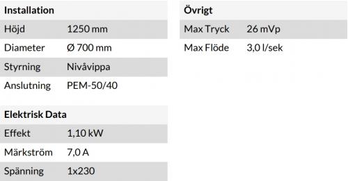 PT07-07-1/1x230/DN40/GRIX32-2/110M/G. PUMPTEK PT07 VILLA är en komplett avloppspumpstation för villa fastigheter.