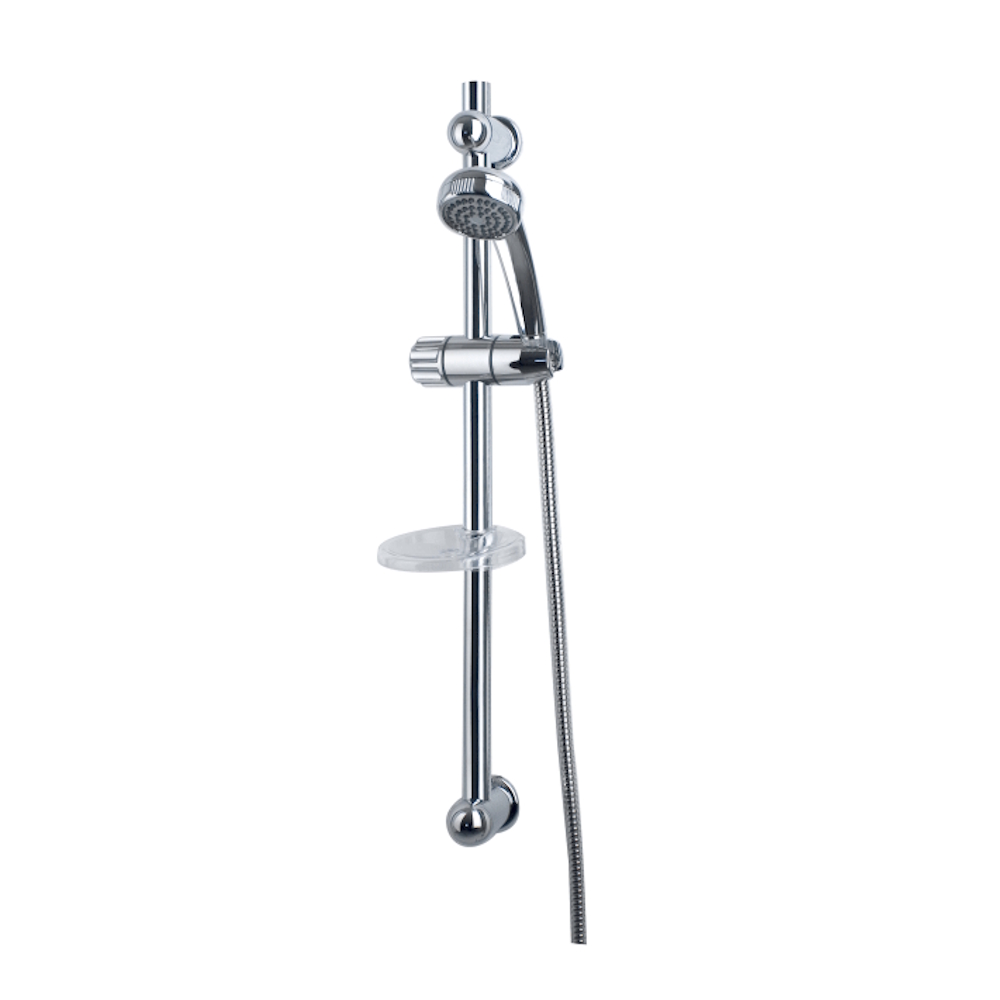 Arrow EasySpray flexible shower set chrome max 735cc with metal hose 1.5m, soap dish, brass rod 25mm hand shower with anti-limescale function.