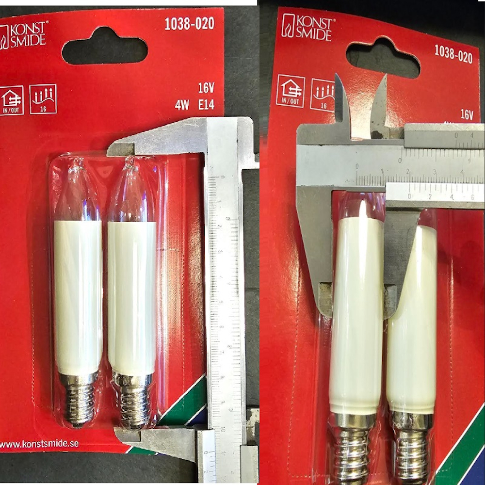 Replacement bulb E14 16V/4W clear with warm white light. Stem bulb 2pcs in a package.