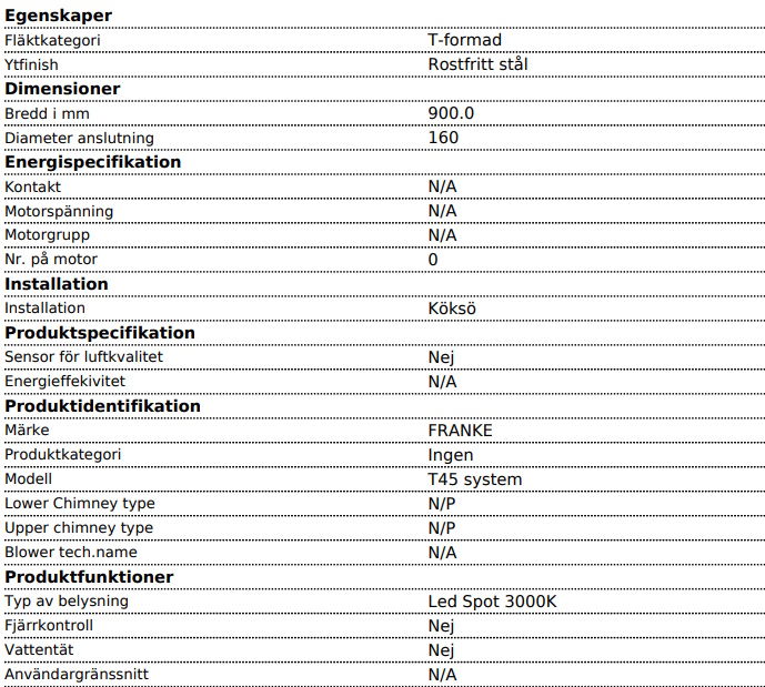 T45 792-14, frihängande kåpa för dig som bor i villa/radhus med självkontrollerande EC-centralfläkt. Kan forcera ventilation i både kök och våtrum , 90cm, rostfri, metalltrådsfilter, 3 hastigheter extern fläkt och ventilationsläge, justerbart grund- och forceringsflöde, Spot-LED 3000K, tillverkad i Sverige