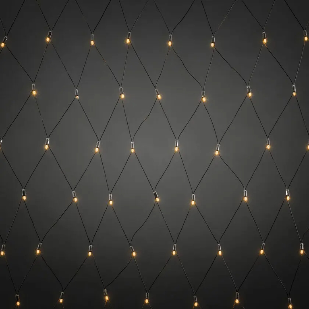 Decorative light net of 3×3 meters with 240 warm white amber LED lights that create atmospheric lighting. [Energiklass G]