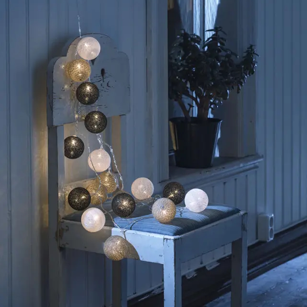 String Lights 16 Yarn Balls Warm White LED IP20 White/Grey/Black Konstsmide