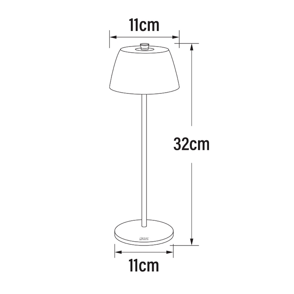 Éze is an elegant and rechargeable table decoration with adjustable lighting, where you can choose the color temperature of either 2200K or 3000K and is dimmable. The lounge lamp fits just as well in the living room as on the patio. Charges via USB and has a battery life of about 9 hours at full brightness. On/off button on the screen. Painted aluminum.
