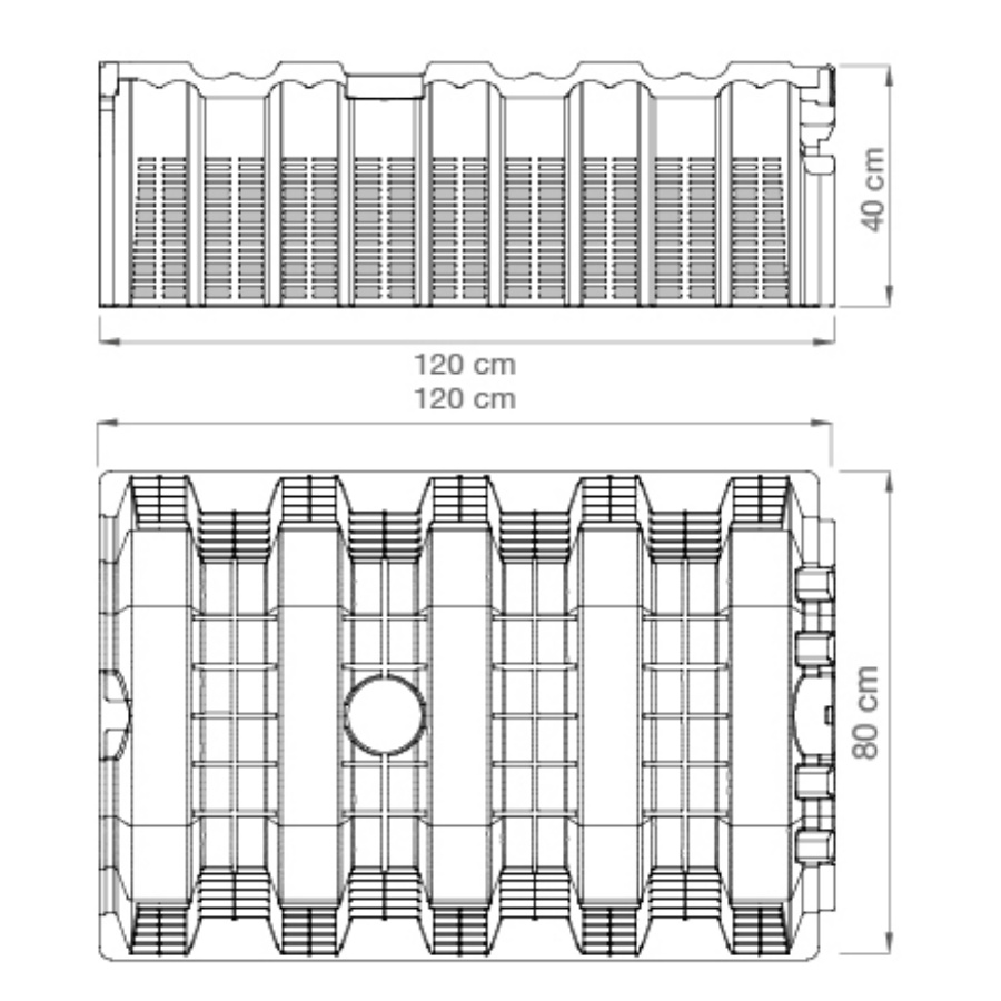 Kassetterna är öppna i botten och är slitsade i väggarna, varje kassett rymmer 310l och kan enkelt kopplas samman till större enheter. Dessa placeras på en dränerande grusbädd, inkommande vattenledning/rör leds in i gaveln på kassetten. Vattnet kan sedan fylla på kassetten och sedan dräneras ut i ett långsammare tempo. Konstruktionen är förstärkt så beroende på gräv/placerings djup går det att montera dom under körbar väg även för tung trafik. För detaljinformation se vår dokumentbank.