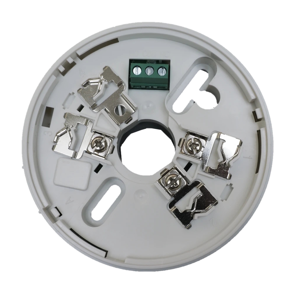 Konventionell detektorsockel med 1st relä. Gemensam first-fix monteringsbas för alla vita detektorer i NC-serien. Dubbla potentialfria kontakter för enkel extern funktionskontroll. En valbar detektorlåsmekanism skyddar mot obehörig borttagning. Stor bakre kabelingång med gott om plats för kablar.