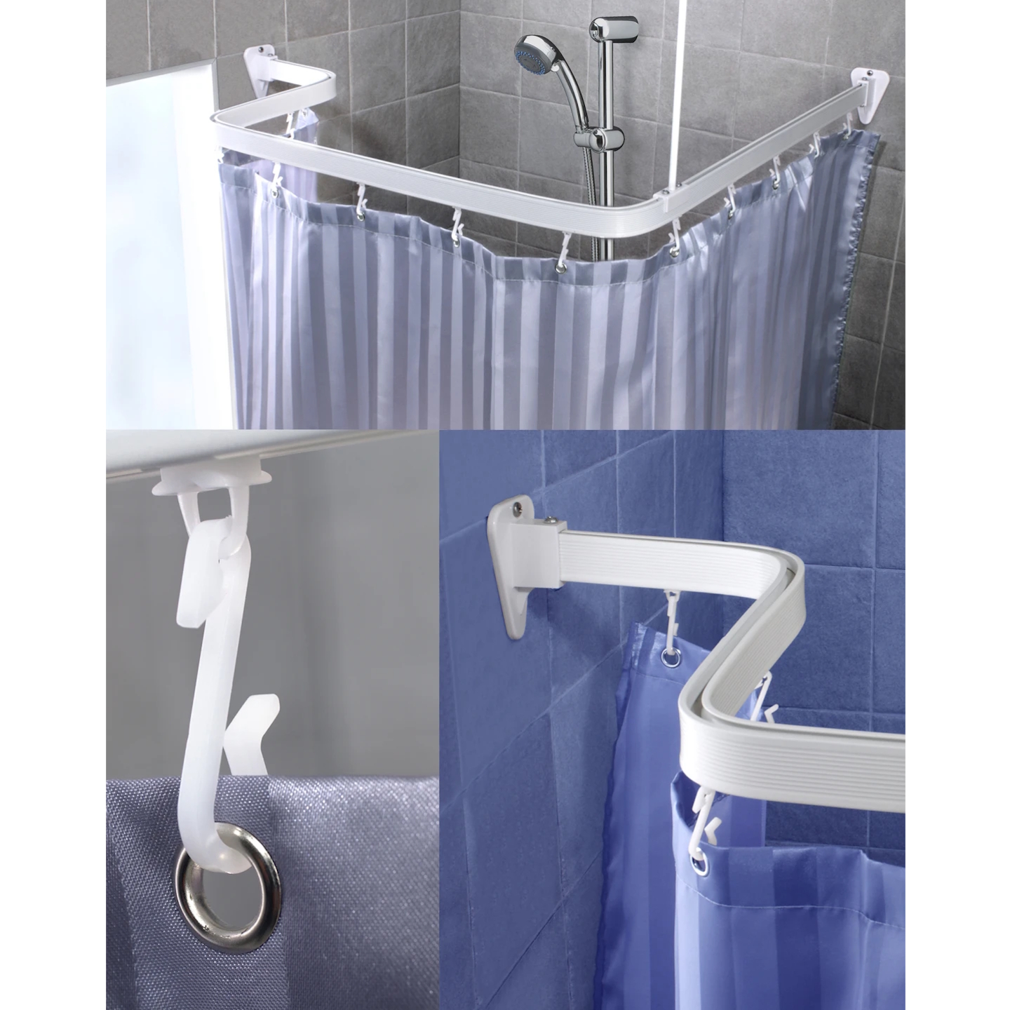 Duschdraperistång vit, Kapa skenan till önskad längd och böj till önskad passform med händerna, Med draperikrokar.