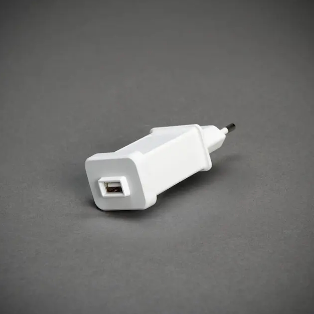 Transformator med USB 5V DC, Max 3,6W Inomhus.