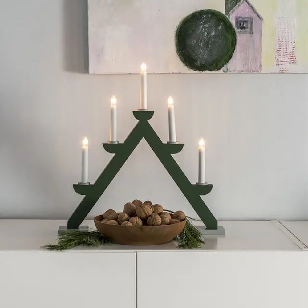 Klassisk adventsljusstake i lackerat trä som skapar en varm och inbjudande känsla i vintermörkret. Med 5 ljus och en traditionell design blir den en tidlös juldekoration som sprider ljus och hemtrevnad år efter år.