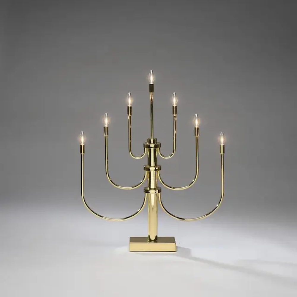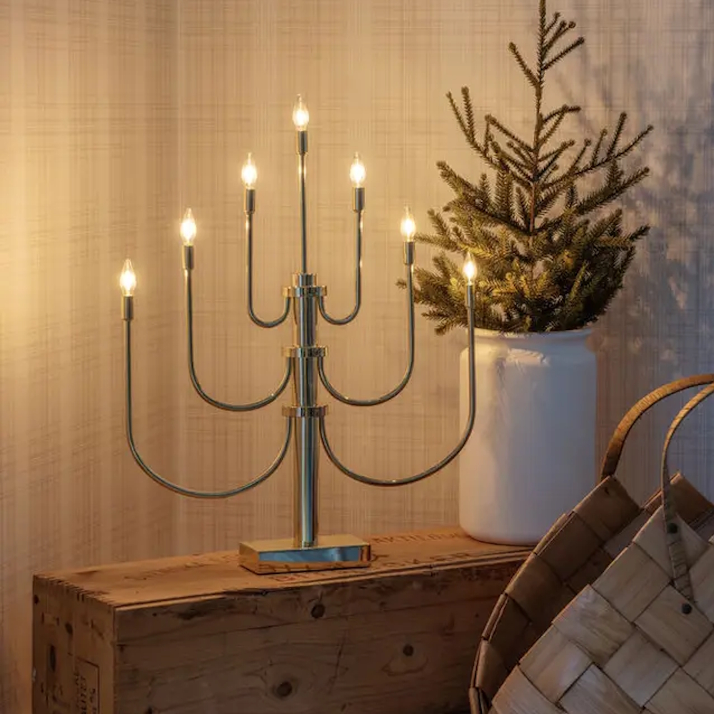 Elegant och klassisk adventsljusstake i mässingsfärgat stål – med LED-lampor. Den varma mässingstonen skapar en vacker kontrast mot de varmvita ljusen och sprider ett mjukt, stämningsfullt sken i hemmet. En tidlös inredningsdetalj som förenar tradition och design.