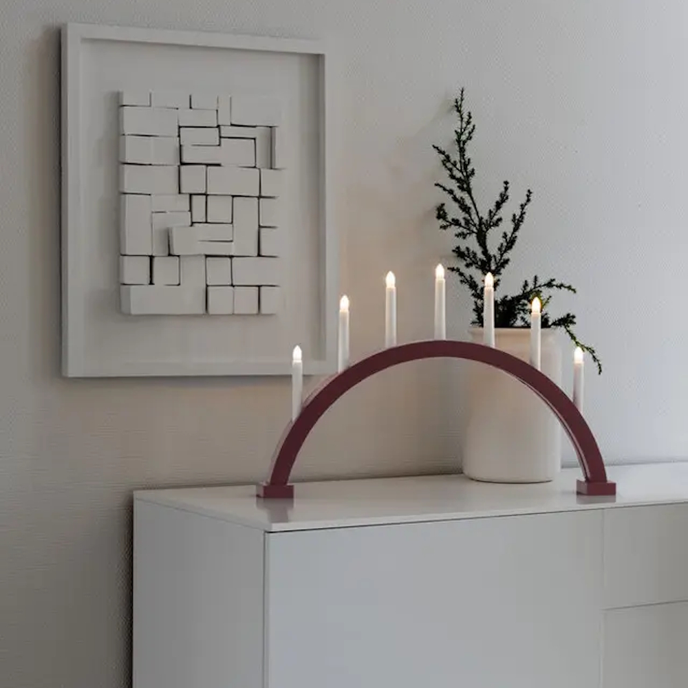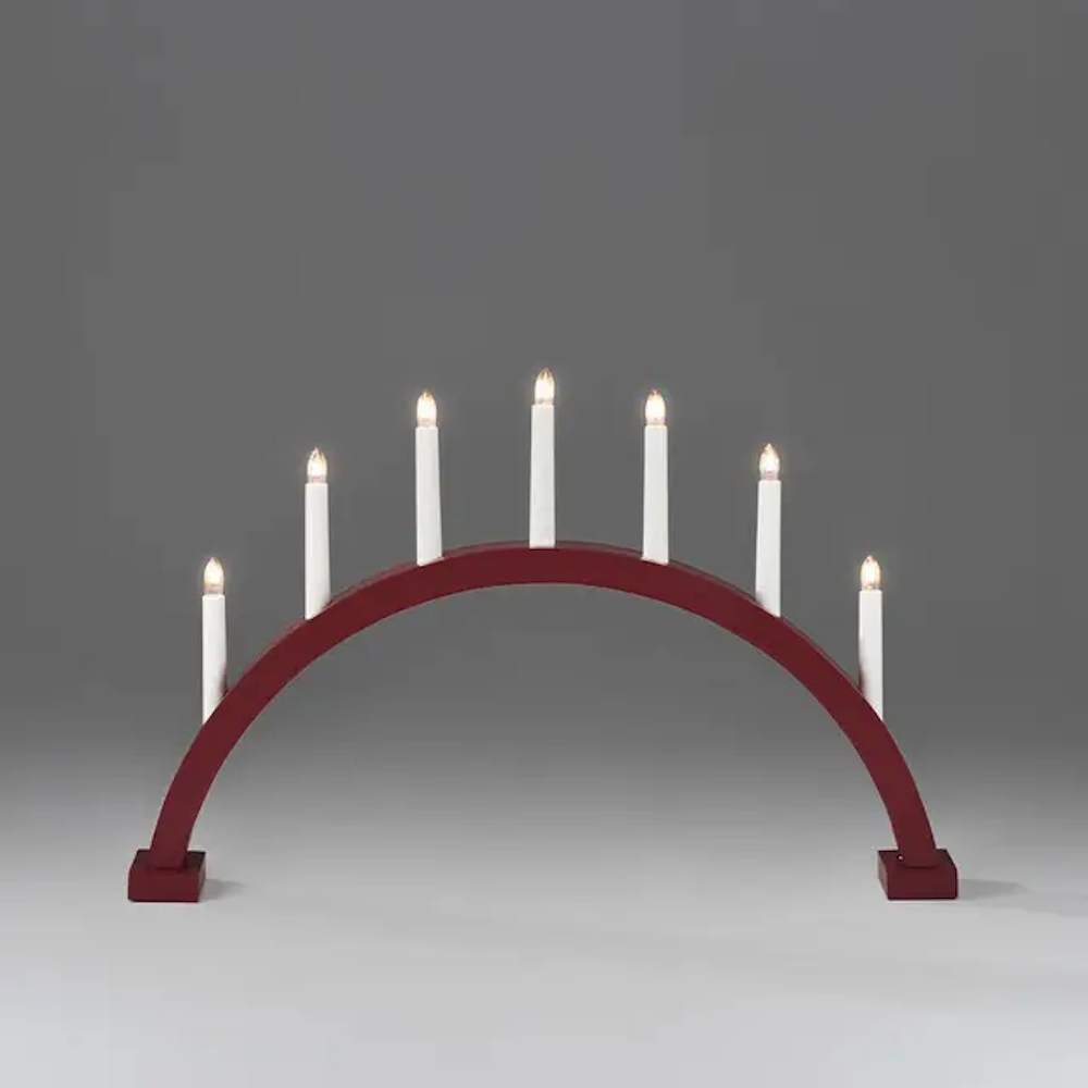 Elljusstake Båge 7 Ljus E10 IP20 Trä Matt Mörkröd Konstsmide