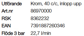 9000XE Badkarsblandare är en blandare i krom med noga avvägd tryck och temperaturreglering