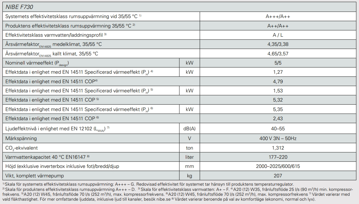 Värmepumpens inverterstyrning ger en mycket hög och ekonomisk värme-effekt. NIBE F730 är välisolerad och energisnål vilket också minimerar värmeförlusten och håller energiförbrukningen så låg som möjligt. Tack vare smart teknik ger produkten dig kontroll över energi-förbrukningen och blir en viktig del av din uppkopplade vardag. Med ett effektivt styrsystem regleras inomhusklimatet automatiskt för maximal komfort, samtidigt som du gör naturen en tjänst.