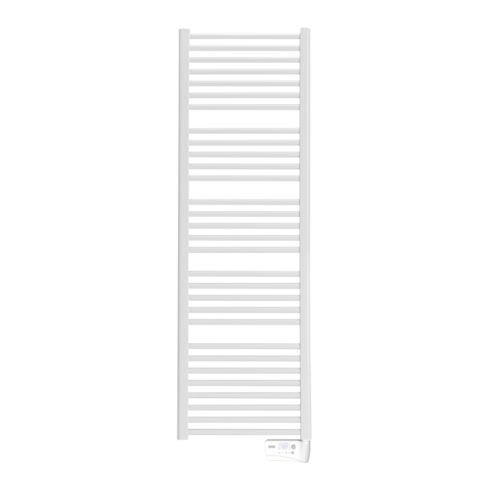 Elektrisk vätskefylld handukstork m raka sidokanaler, D-formade vertikalrör inkl elektronisk väggmonterad termostat.