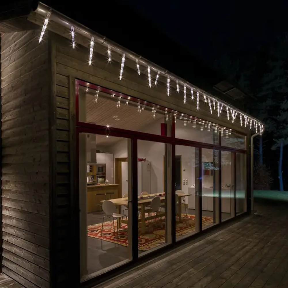 Skapa vinterkänsla med en istappsslinga där lamporna liknar glittrande istappar och vit kabel. [Energiklass G]