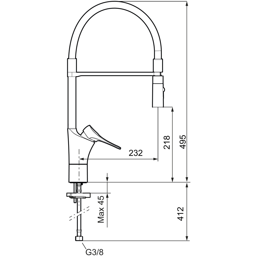 9000XE Köksblandare med flexi-pip i krom har löstagbar handdusch. Tack vare flexibiliteten med den löstagbara pipen och valbar strålbild kommer den åt överallt.